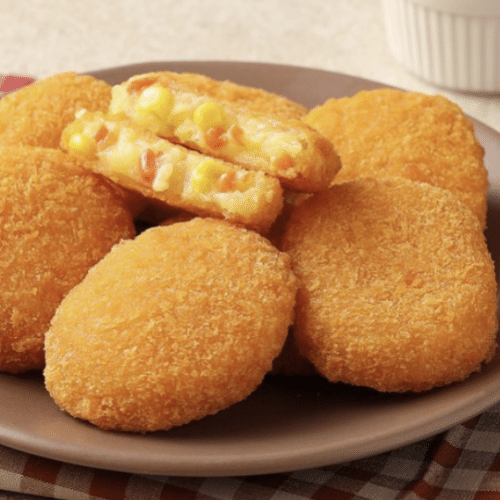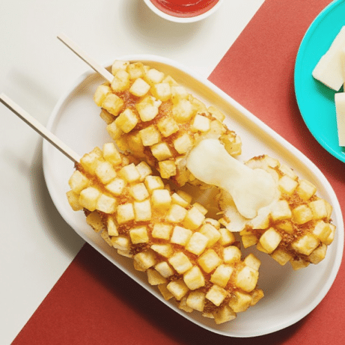 A crunchy Korean corn dog filled with juicy halal chicken sausage, wrapped in a sweet and savory batter for a delicious street food experience